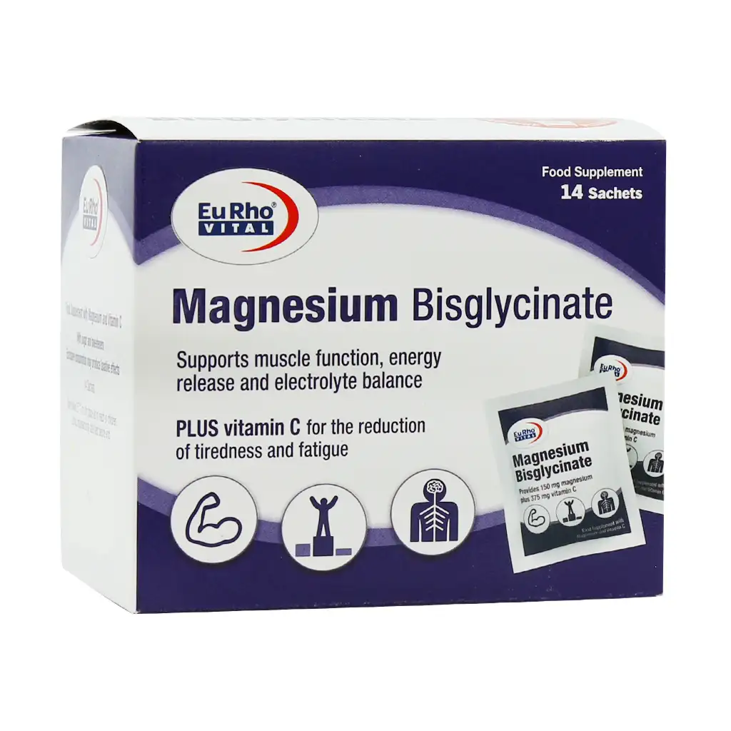 ساشه منیزیم بیس گلایسینات یوروویتال یک مکمل غذایی باکیفیت بالاست که حاوی منیزیم به فرم بیس گلایسینات با جذب بالا و تحمل گوارشی بهتر و ویتامین C جهت جذب بهتر منیزیم و افزایش انرژی روزانه است. این محصول به افزایش سطح انرژی، کاهش خستگی، رفع گرفتگیهای عضلانی، کاهش شدت سردردهای میگرنی، بهبود کیفیت خواب، کاهش علائم سندروم پیش از قاعدگی کمک میکند. ساشه منیزیم یورو ویتال به صورت ساشههای تک عددی با طعم پرتقال توسط شرکت حکیمان طب کار و تحت لیسانس یورو او تی سی فارما آلمان تولید و روانه بازار شده است.