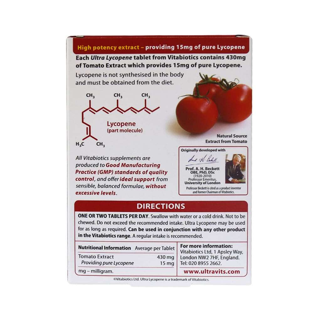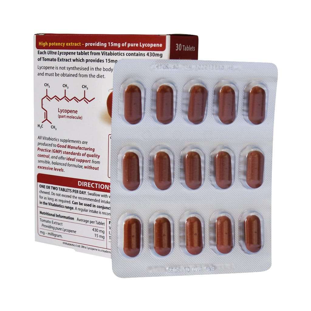قرص اولترا لیکوپن ویتابیوتیکس حاوی 200 میلی گرم عصاره گوجه فرنگی که تامین کننده 10 میلی گرم لیکوپن خالص است.
